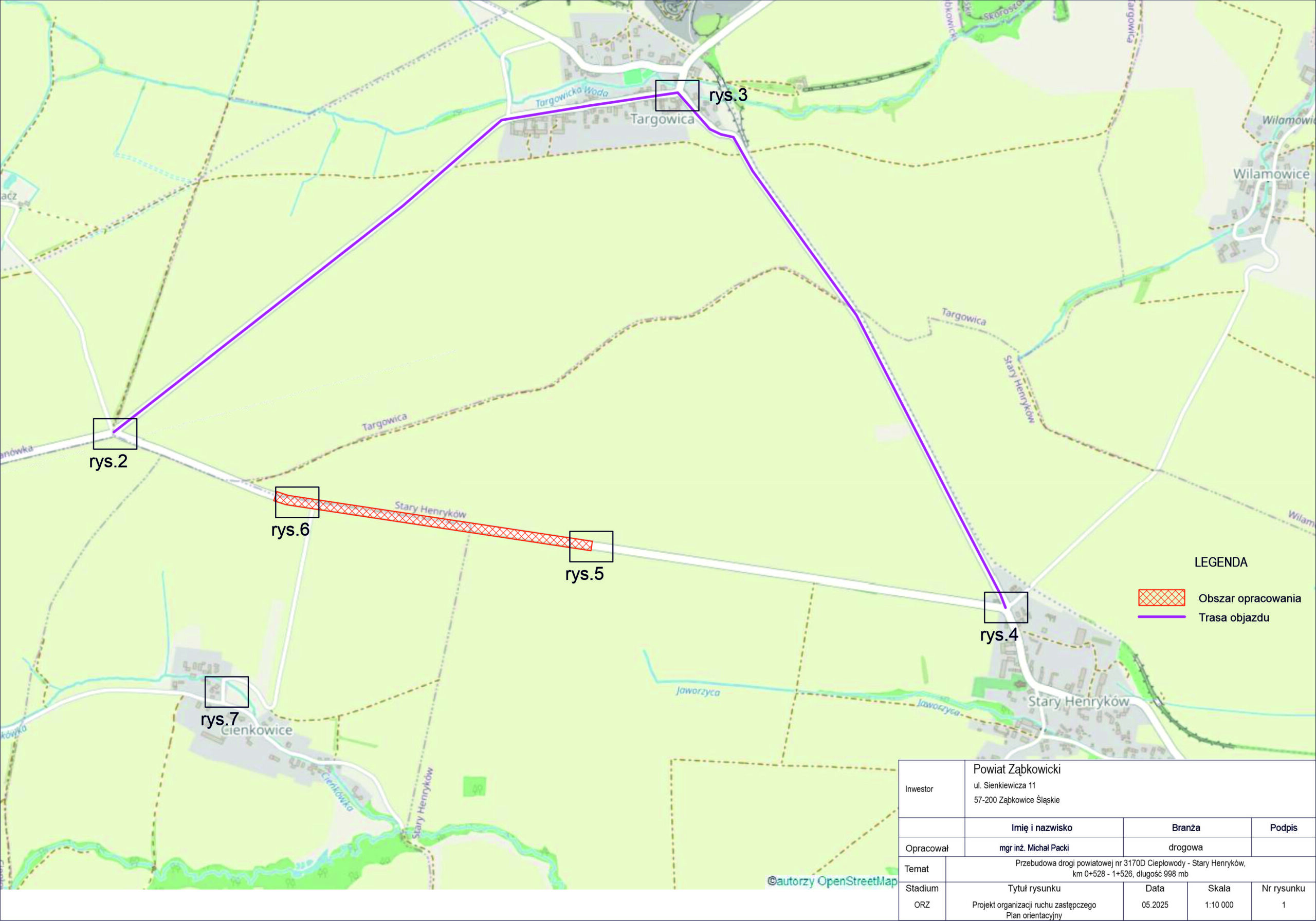 🚧Do miejscowości Stary Henryków wprowadzony zostanie objazd przez Targowicę – mapka w załączeniu.