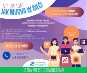 Szkolenie organizuje Sudecki Instytut Rozwoju Regionalnego. Nie wpadaj jak mucha w Sieć! 🕸 Zapisz się już dzisiaj!