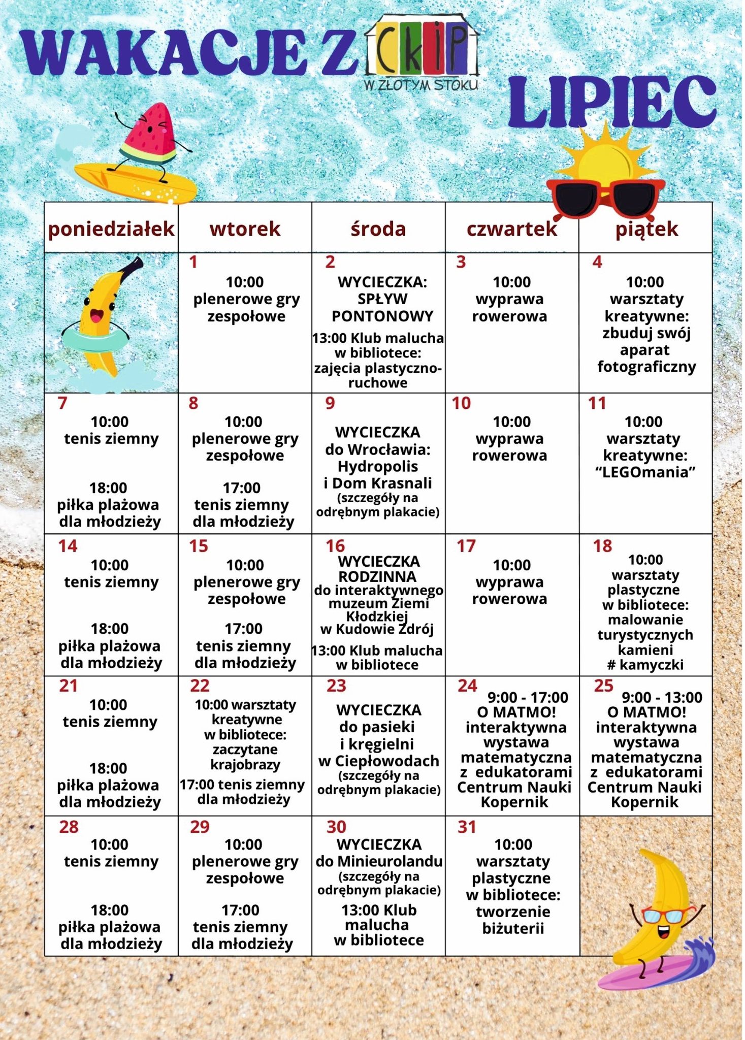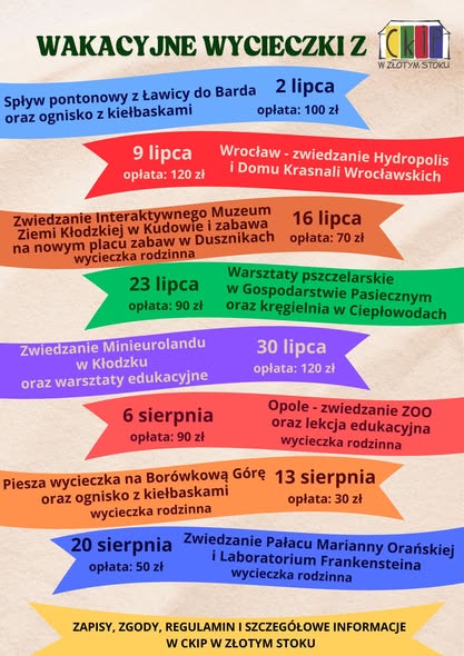 Centrum Kultury i Promocji w Złotym Stoku zaplanowało dla dzieci i młodzieży liczne aktywności i wycieczki