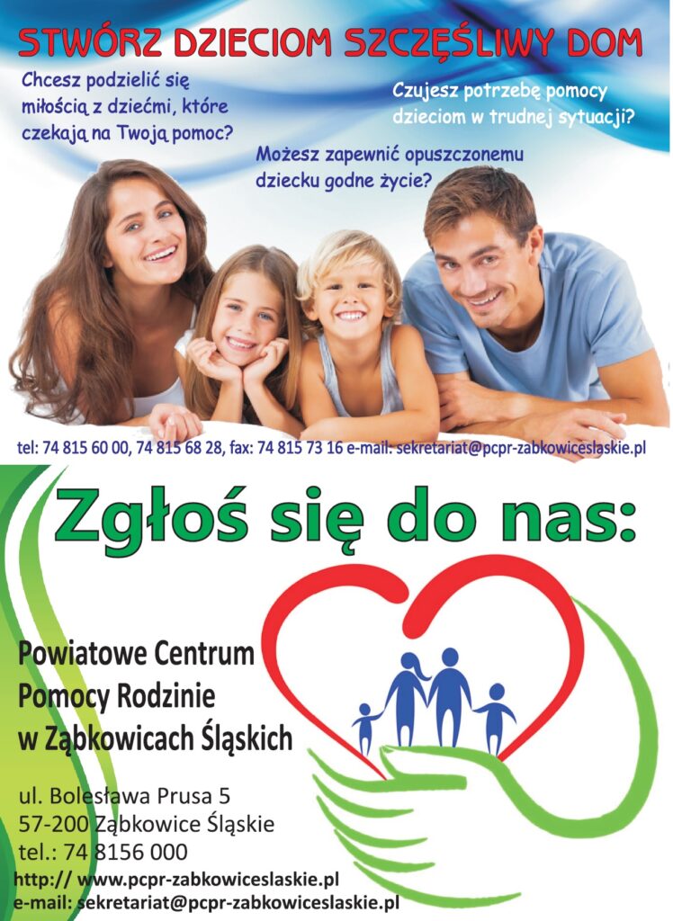 dzieci. Rodziny zastępcze ściśle współpracują z Powiatowym Centrum Pomocy Rodzinie w Ząbkowicach Śląskich.