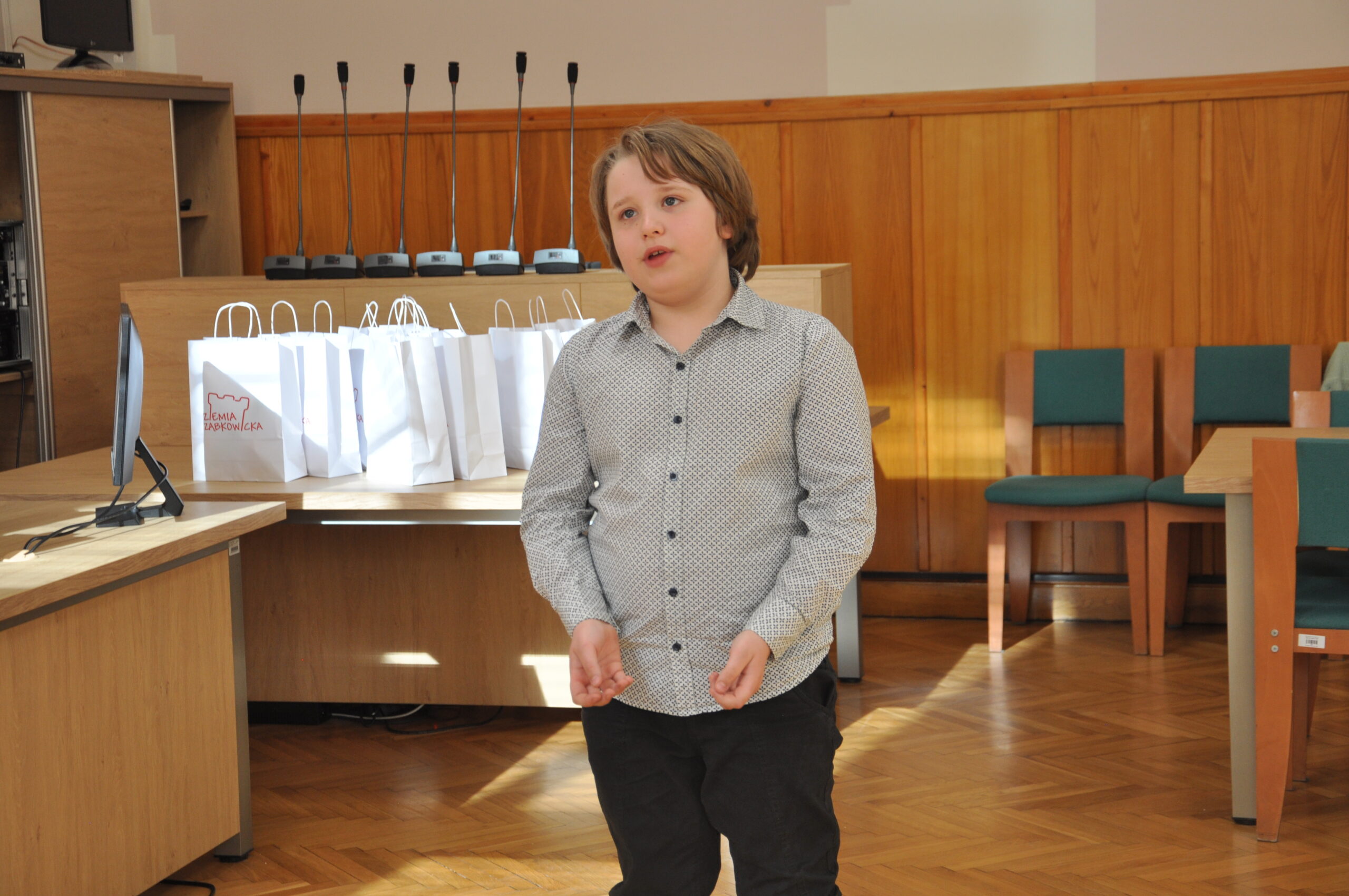 Przed komisją konkursową wystąpiło 14 recytatorów, finalistów etapów gminnych konkursu. Uczestnicy występowali  w dwóch kategoriach: „młodsi” (klasy 4-6) oraz „starsi” (klasy 7-8).
