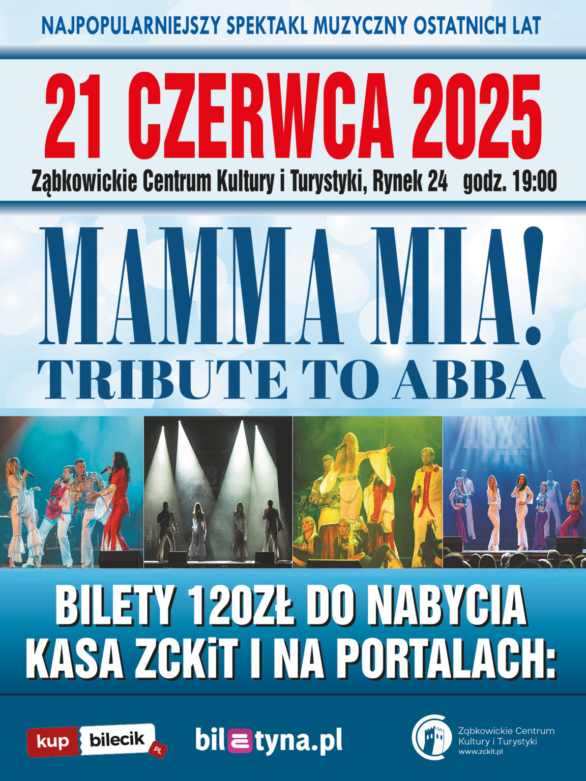 Bilety: Mamma Mia – Ząbkowice Śląskie Ząbkowickie Centrum Kultury i Turystyki, 21 czerwca | Kupuj Bilety Online – biletyna.pl oraz MAMMA MIA / Ząbkowice Śląskie / 2025-06-21, 19:00 WYBIERZ MIEJSCE oraz w kasie ZCKiT