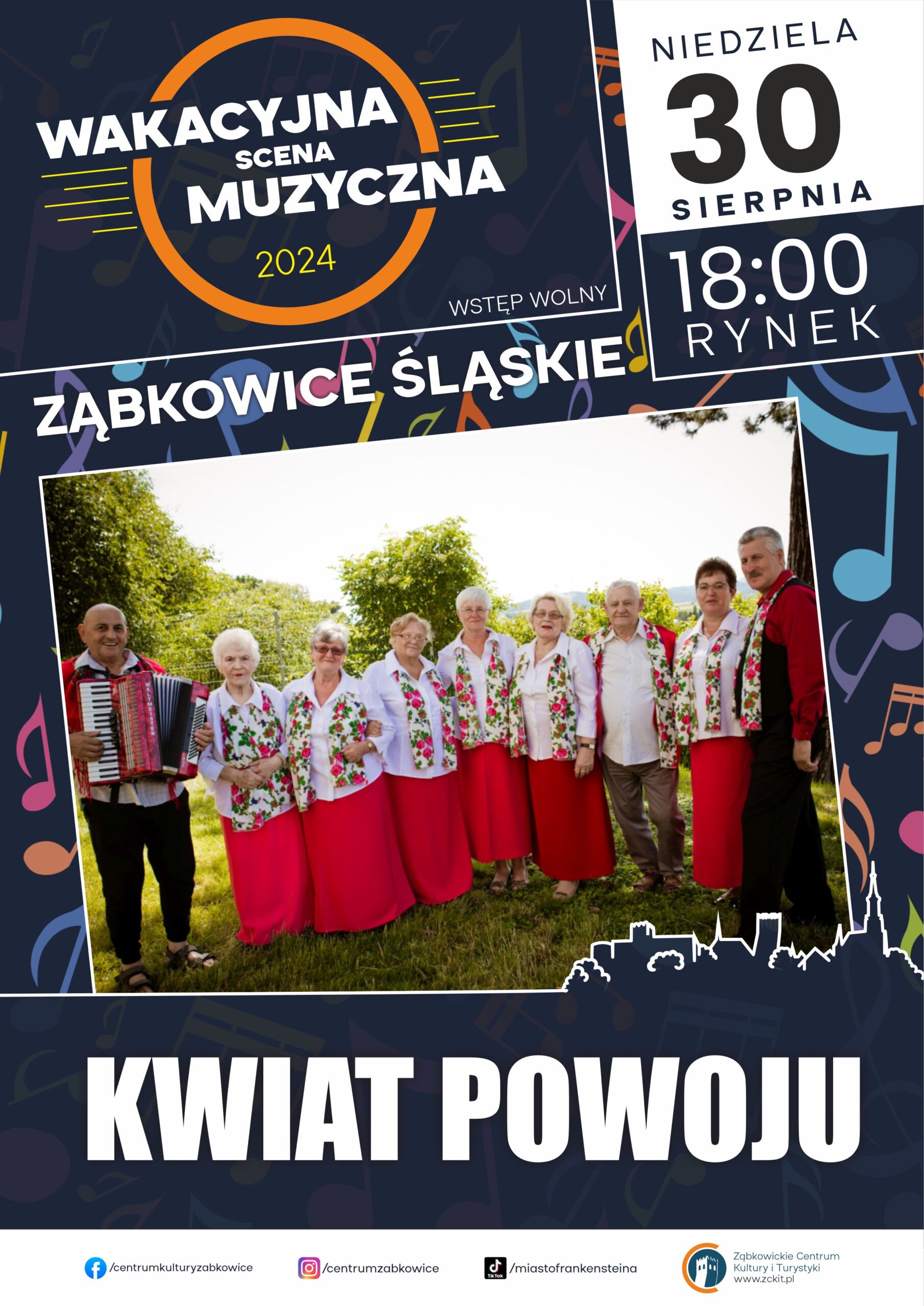 Wakacyjna scena muzyczna 2024-Kwiat powoju Czas rozpoczęcia 18:00 30 sierpnia 2024 Czas zakończenia 19:00 30 sierpnia 2024 Adres Ząbkowicki Rynek Udostępnij: