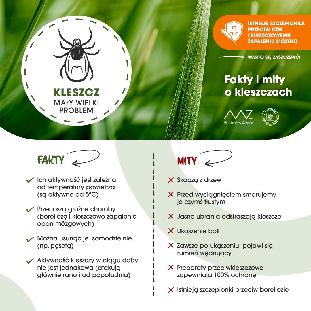 Powiatowa Stacja Sanitarno-Epidemiologiczna w Ząbkowicach Śląskich informuje o faktach i mitach odnośnie kleszczy i zagrożeń z nimi związanych!