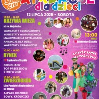 Tradycyjnie w sobotnie południe zapraszamy najmłodszych na ul. Św. Wojciecha pod Krzywą Wieżą, do ogrodu Izby Pamiątek Regionalnych przy ul. Krzywej oraz na rynek. Wszystkie dzieci od 10:00 do 14:00 będą mogły wziąć udział w warsztatach artystycznych i kulinarnych, konkurencjach sportowych oraz grach i zabawach przygotowanych przez animatorów .