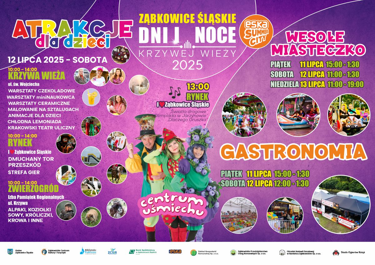 Na terenie wydarzenia czeka wesołe miasteczko z różnymi urządzeniami i atrakcjami dla dzieci, młodzieży i dorosłych. Karuzele, dmuchańce, zjeżdżalnie i wiele innych — idealne miejsce na dobrą zabawę i trochę adrenaliny.