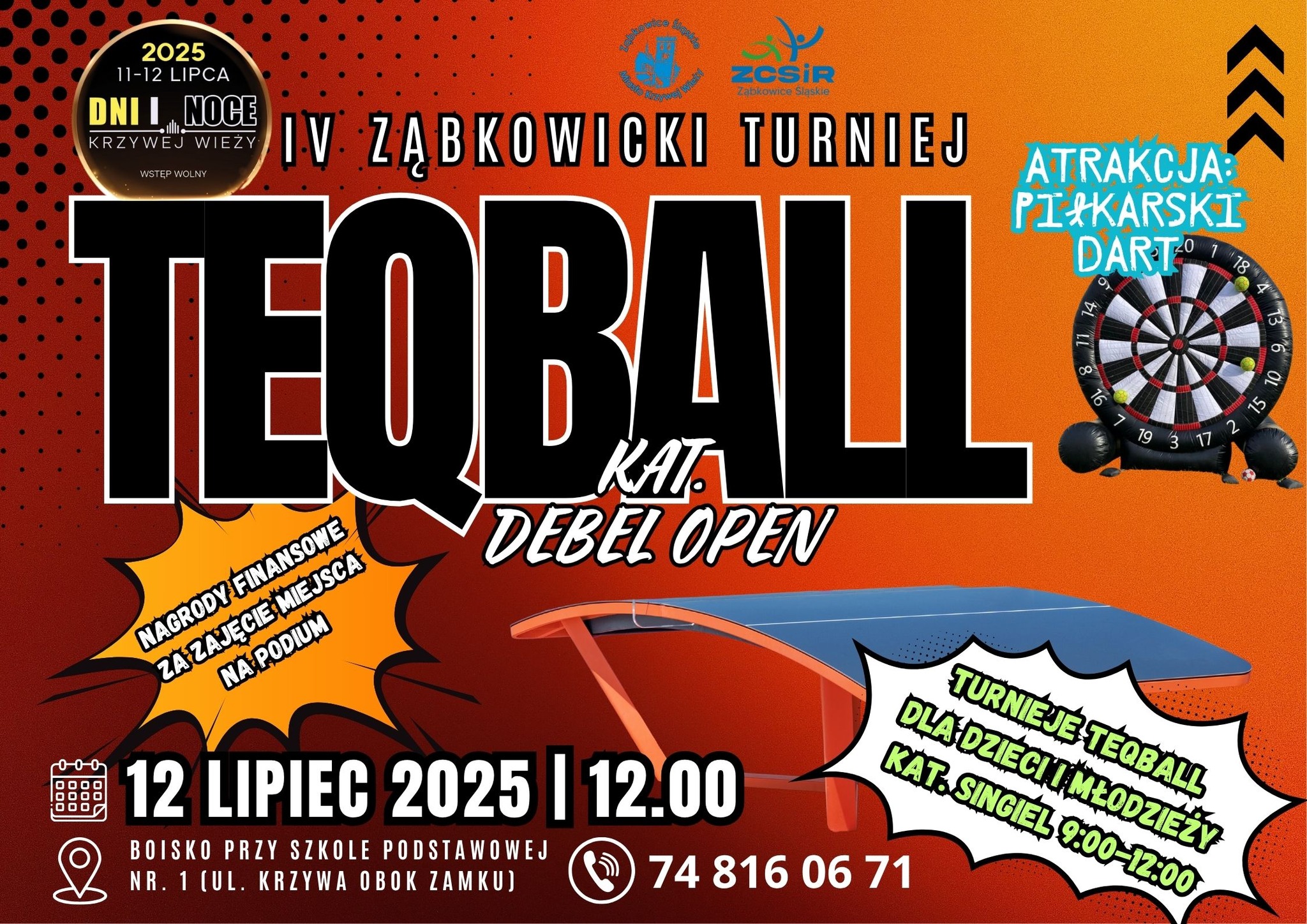 W ramach Dni i Nocy Krzywej Wieży zapraszamy na widowiskowy Turniej Teqball. Przyjdź zobaczyć efektowne pojedynki i popisy piłkarskie przy stołach Teq, a jeśli chcesz — spróbuj swoich sił!