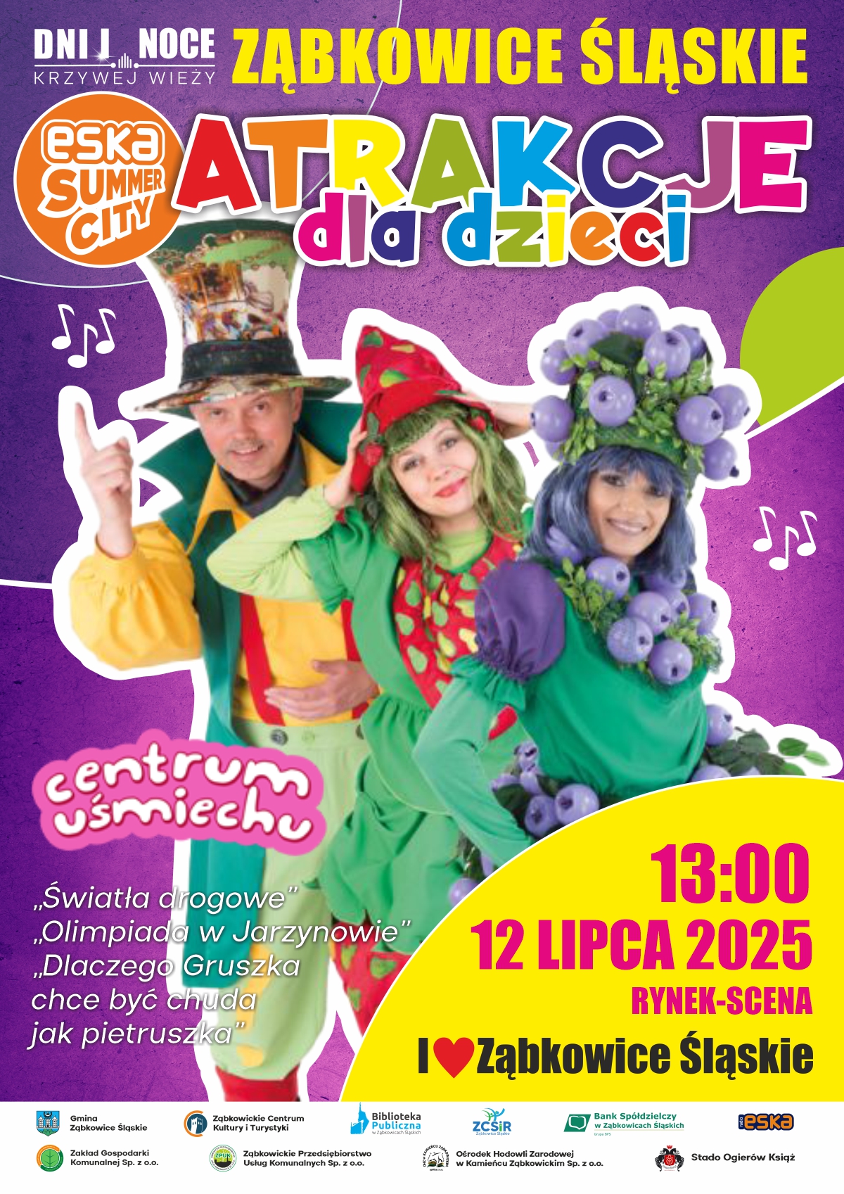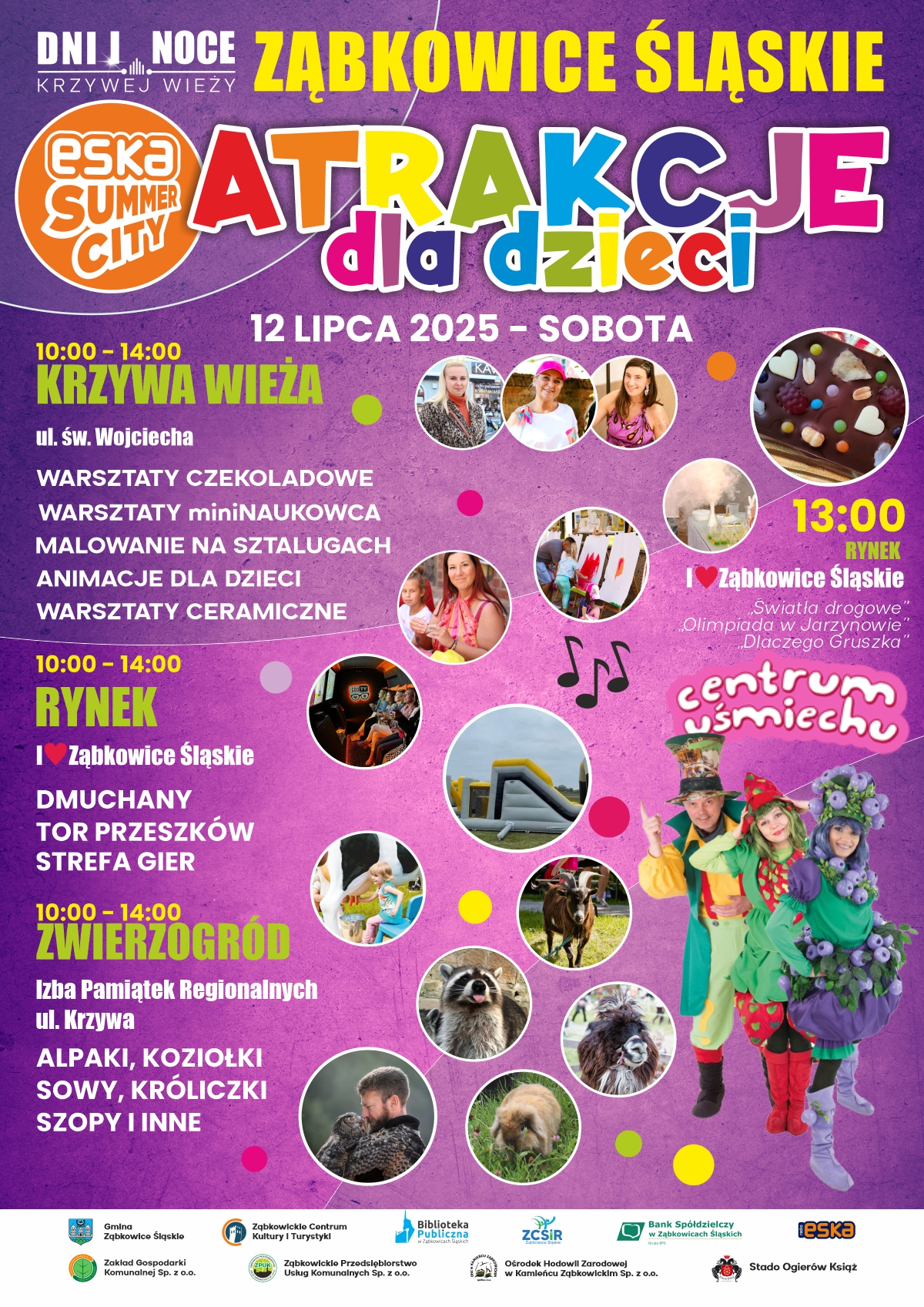 Tradycyjnie w sobotnie południe zapraszamy najmłodszych na ul. Św. Wojciecha pod Krzywą Wieżą, do ogrodu Izby Pamiątek Regionalnych przy ul. Krzywej oraz na rynek. Wszystkie dzieci od 10:00 do 14:00 będą mogły wziąć udział w warsztatach artystycznych i kulinarnych, konkurencjach sportowych oraz grach i zabawach przygotowanych przez animatorów .