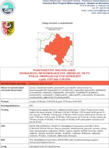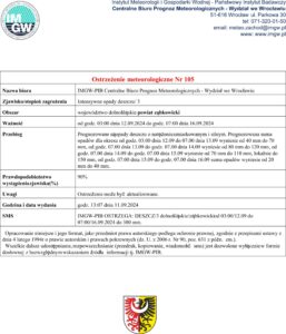 KOMUNIKAT IMGW – OSTRZEŻENIA STOPNIA 3, NAJWYŻSZEGO, DLA POWIATU ZĄBKOWICKIEGO
