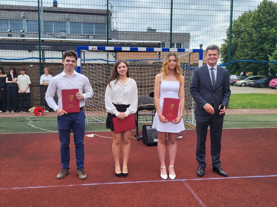W trakcie uroczystych apeli, Starosta oraz Członkowie Zarządu, w imieniu Zarządu Powiatu, złożyli najlepszym uczniom serdeczne gratulacje oraz przekazali nagrody pieniężne w wysokości 1.000 zł. Życzyli również wszystkim udanych i bezpiecznych wakacji oraz odpoczynku, na który, z pewnością, zasłużyli.