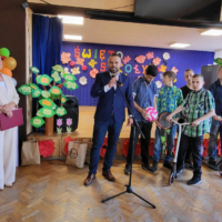 Dzieci, z tej okazji, odwiedzili: Wicestarosta – Dariusz Małozięć oraz Kierownik Wydziału Promocji, Rozwoju i Oświaty – Kinga Grabowa, którzy wręczyli drobne upominki.