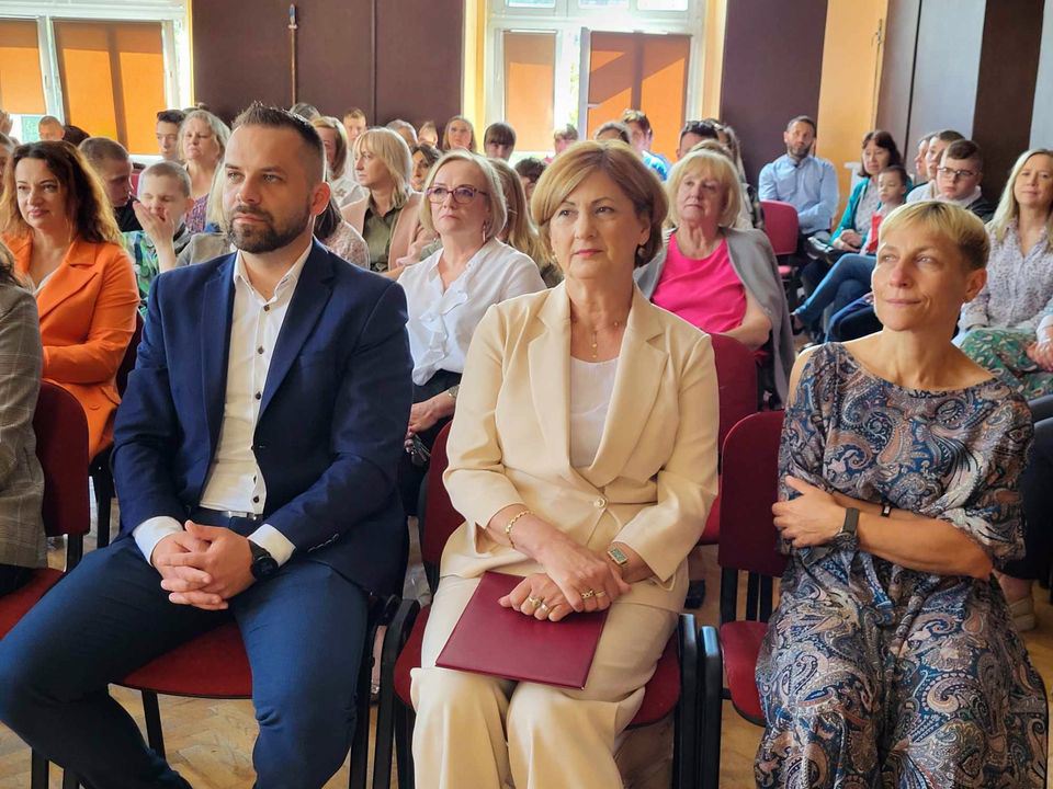 Dzieci, z tej okazji, odwiedzili: Wicestarosta – Dariusz Małozięć oraz Kierownik Wydziału Promocji, Rozwoju i Oświaty – Kinga Grabowa, którzy wręczyli drobne upominki.