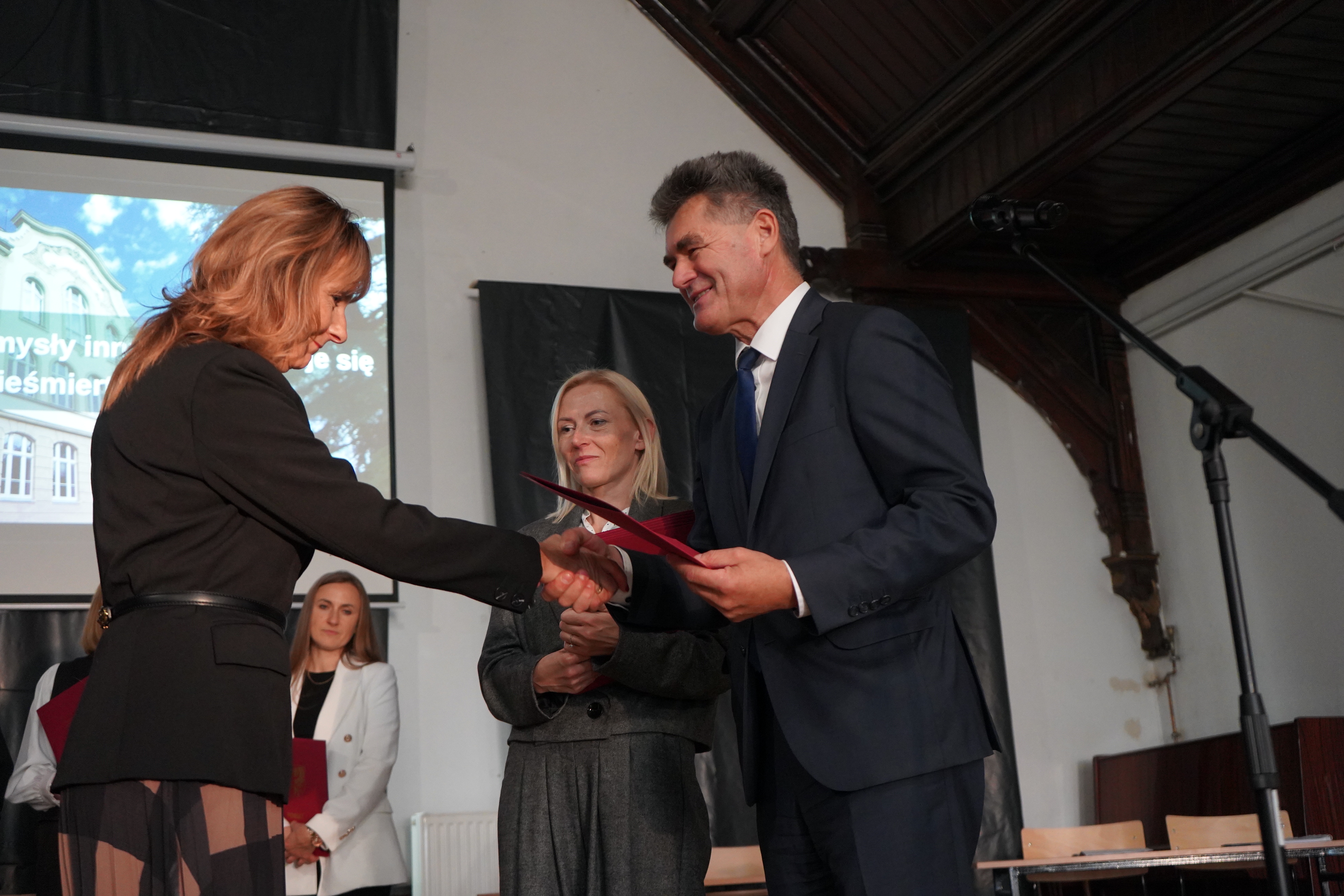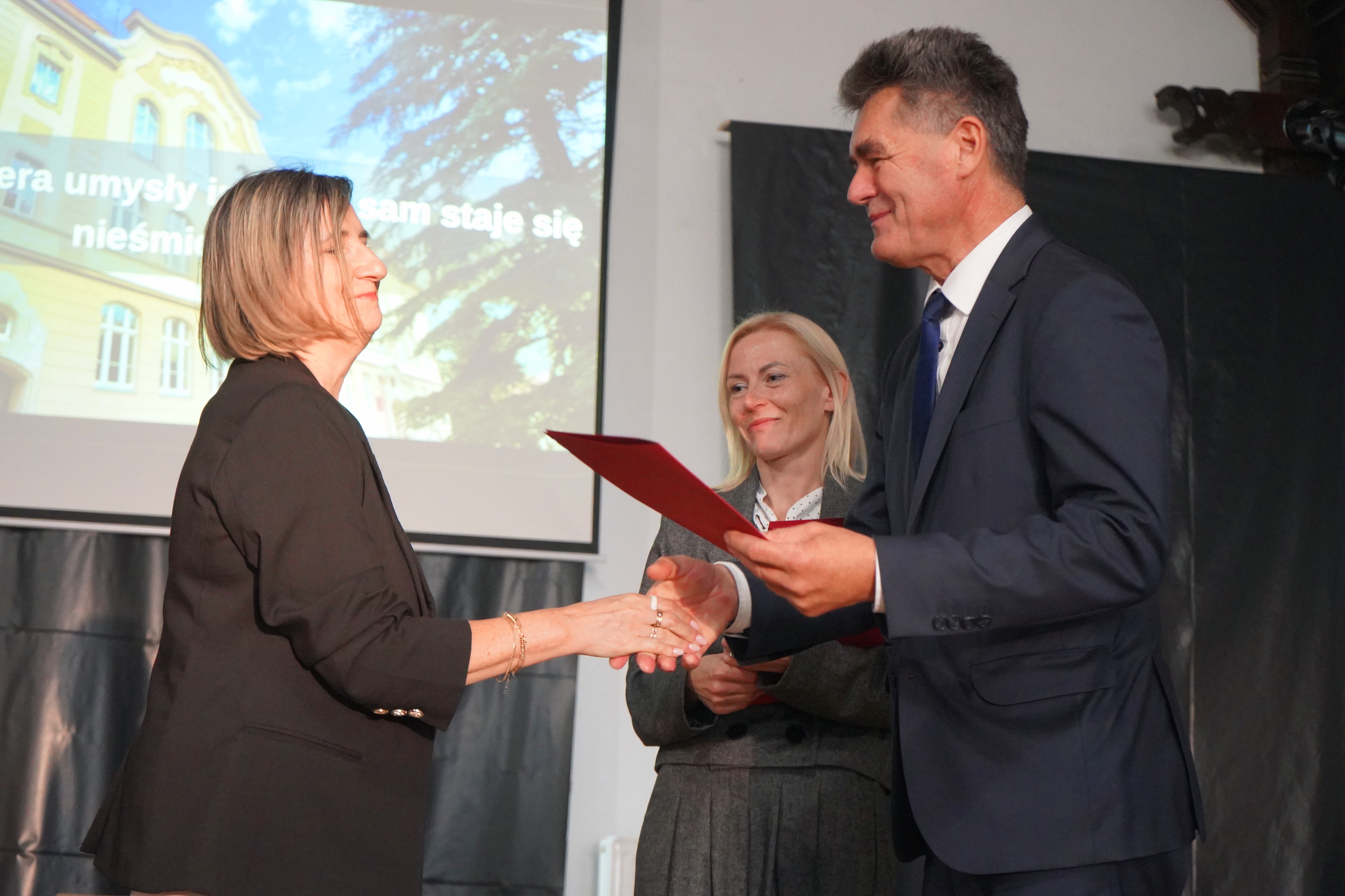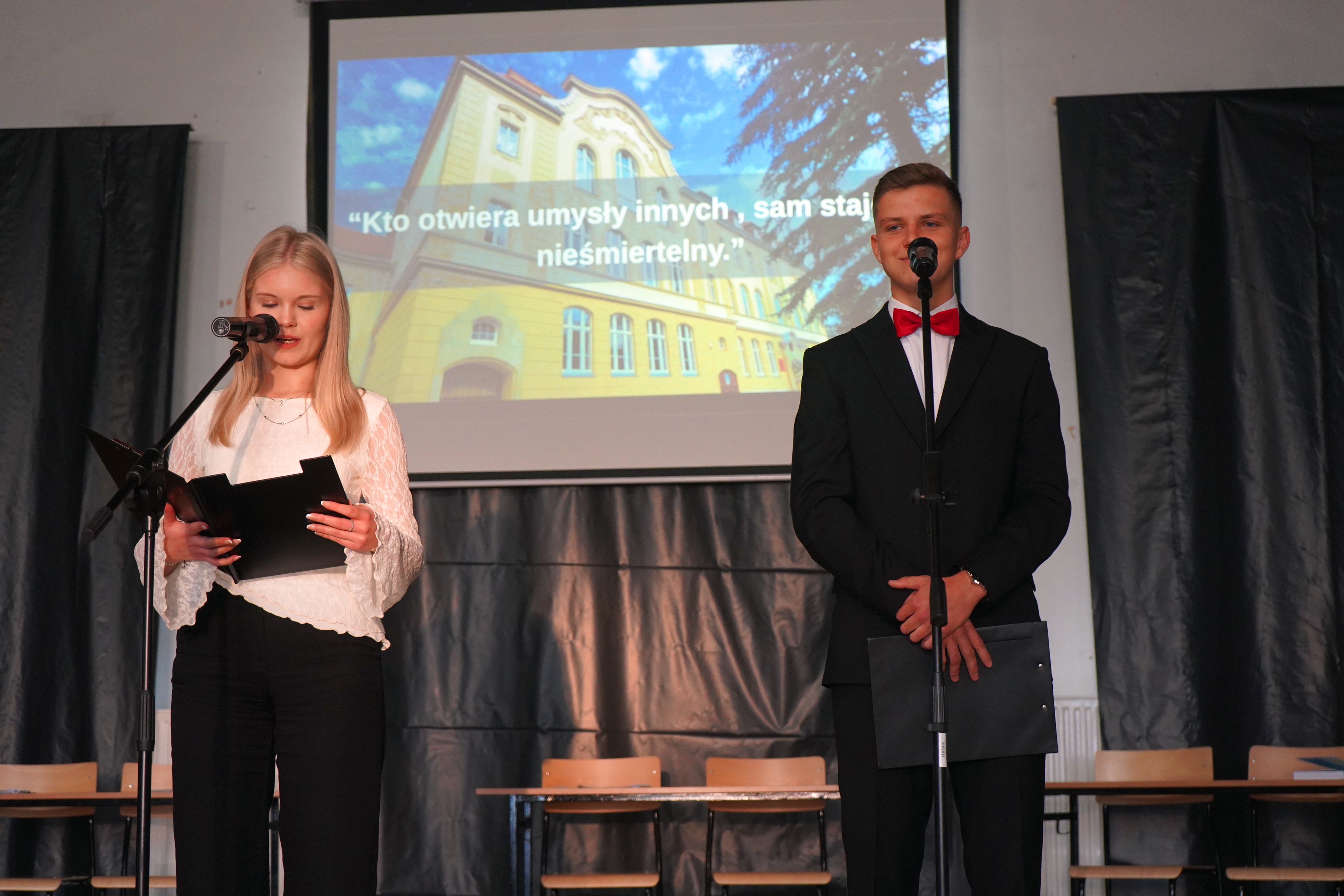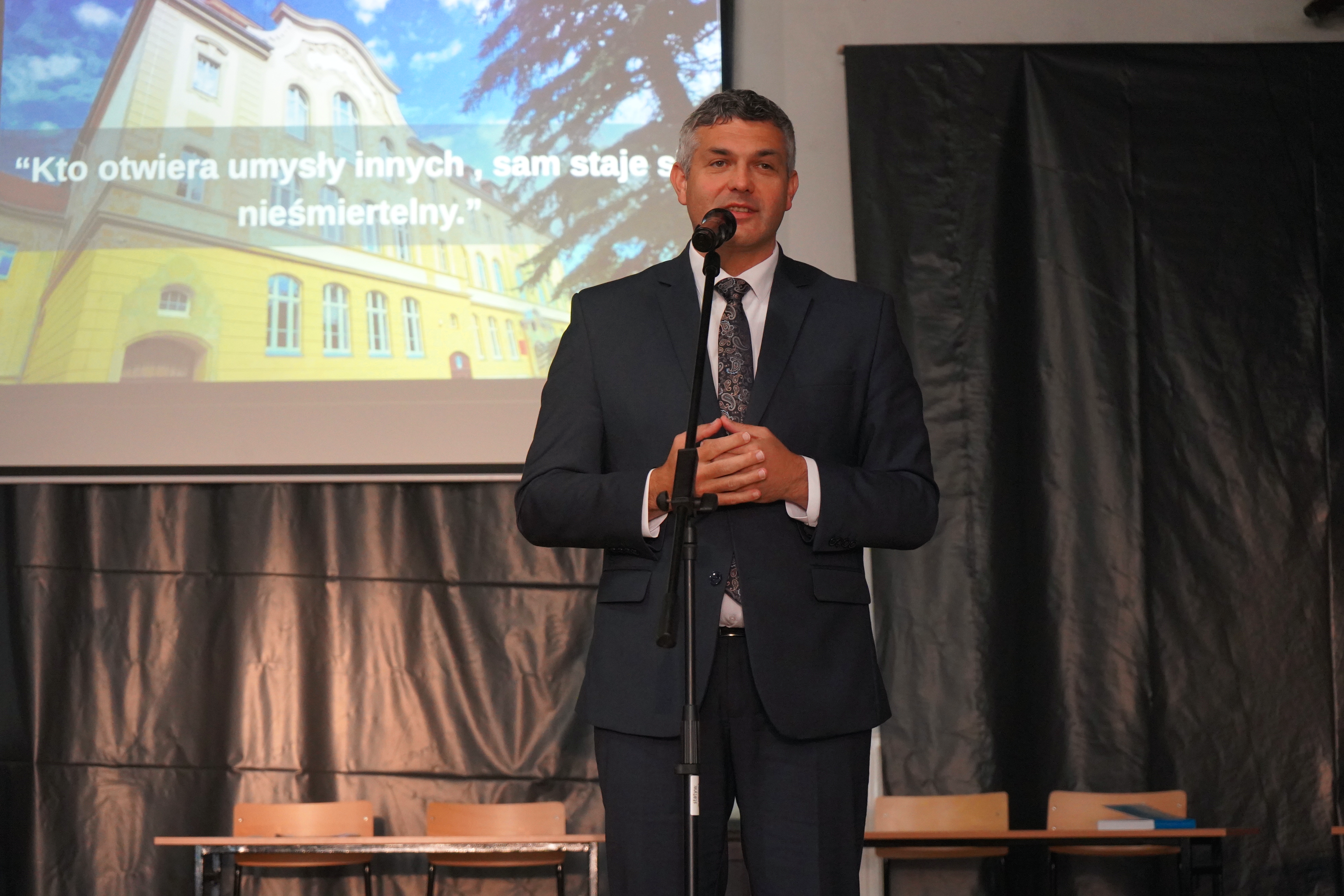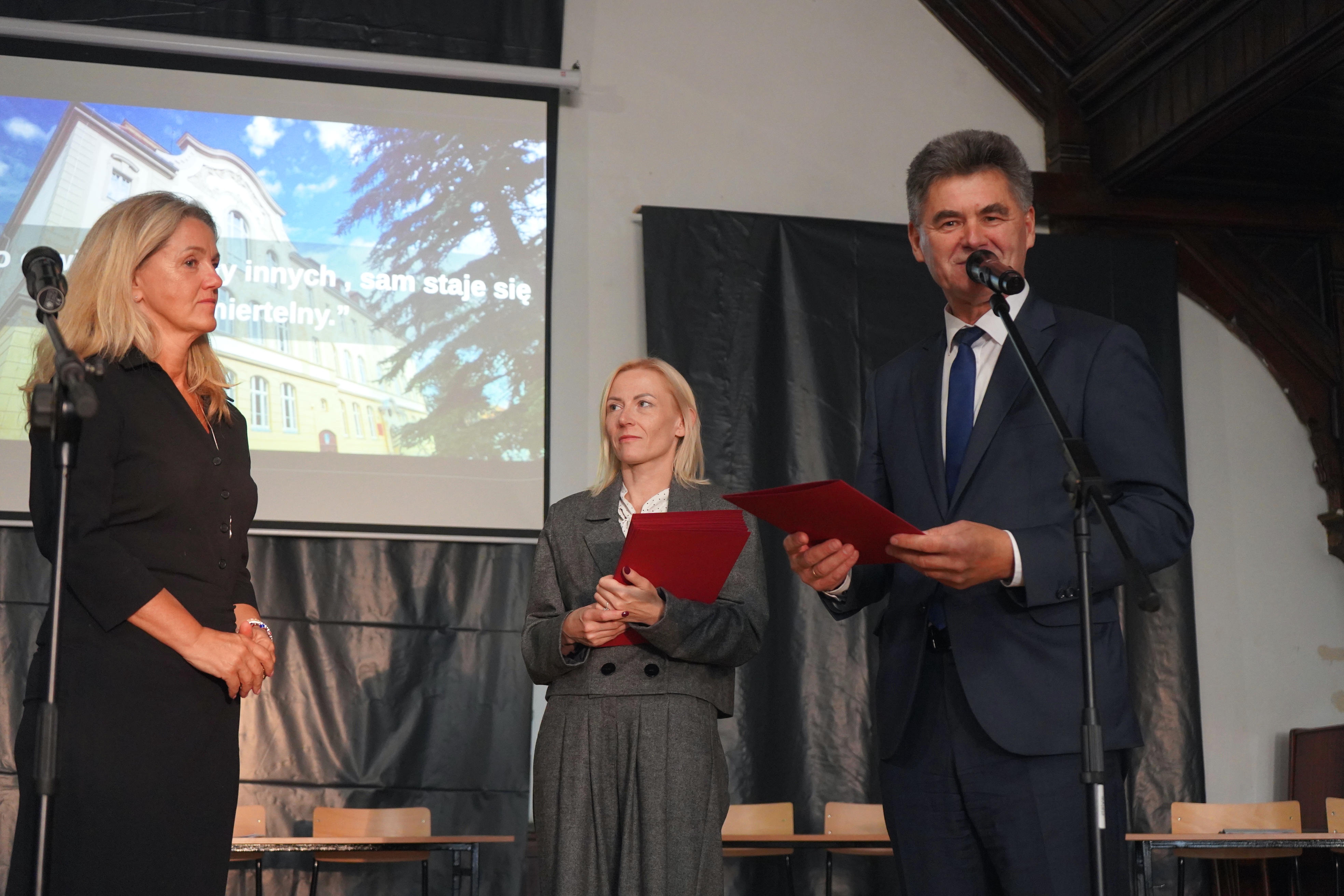 Starosta oraz Dyrektor szkoły Ryszard Pawłowski podziękowali firmie Kalfas z Kamieńca Ząbkowickiego, która wykonała renowację elewacji budynku szkoły. Starosta w swoim wystąpieniu wspomniał, że to kolejna, udana inwestycja placówki oświatowej Powiatu Ząbkowickiego, dzięki czemu dziś możemy oglądać piękny i wyremontowany budynek, który odzyskał dawny blask i stał się jednym z ładniejszych w okolicy. Wszystkie wykonane w ostatnim czasie inwestycje oświatowe sprawiają, że szkoły, dla których organem prowadzącym jest Powiat Ząbkowicki, stają się konkurencyjne i atrakcyjne, w stosunku do innych placówek.