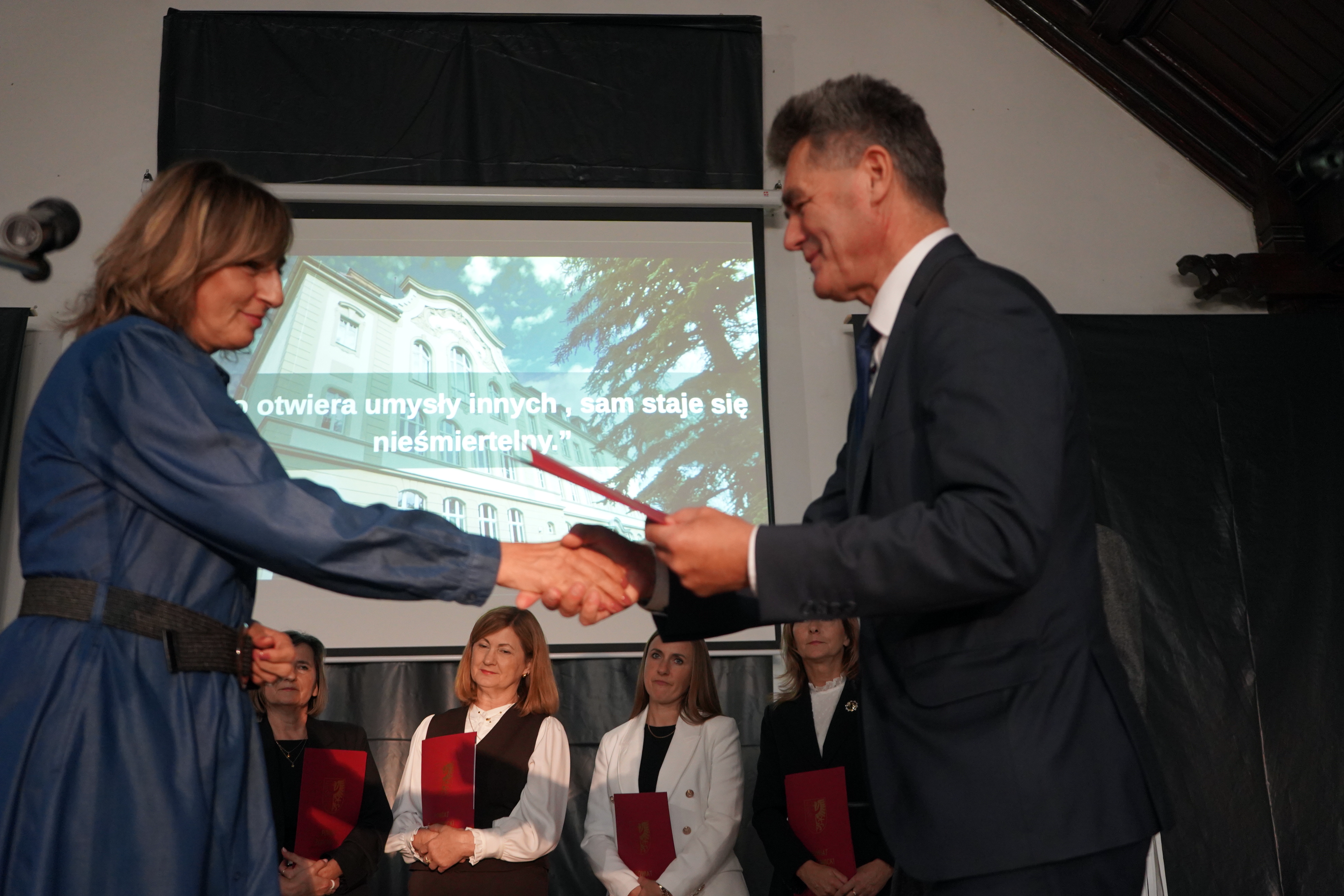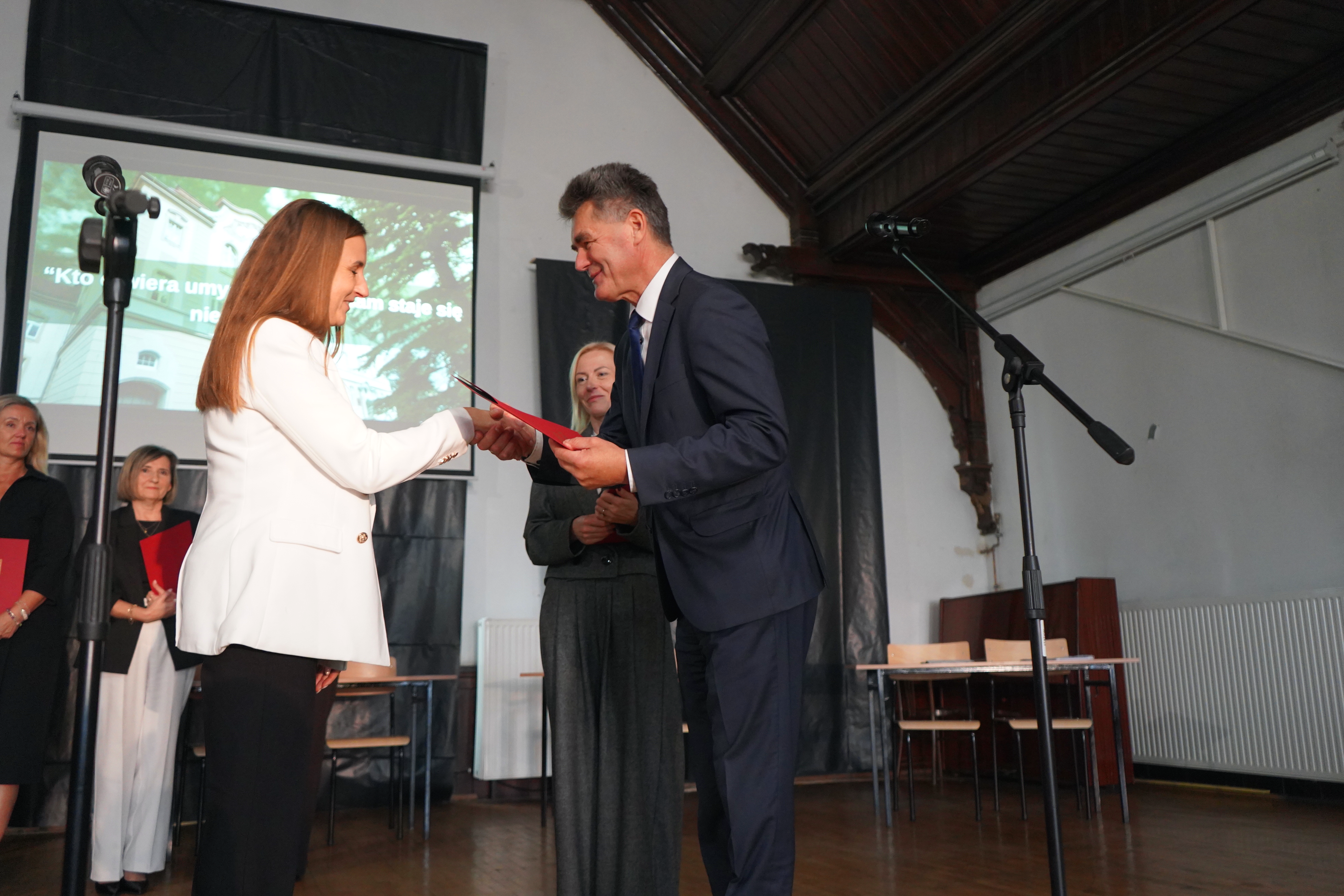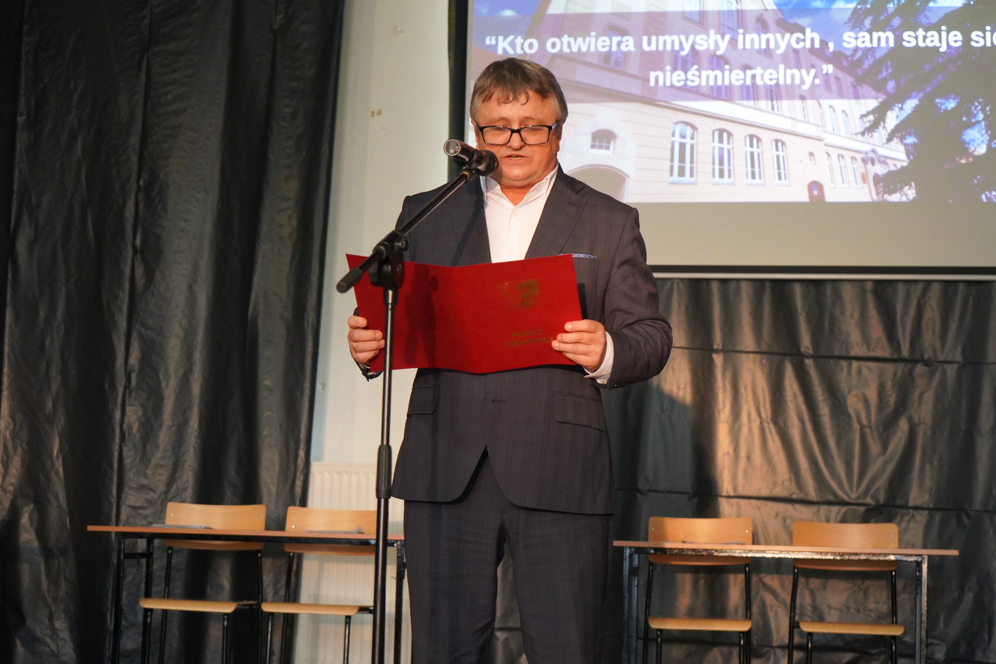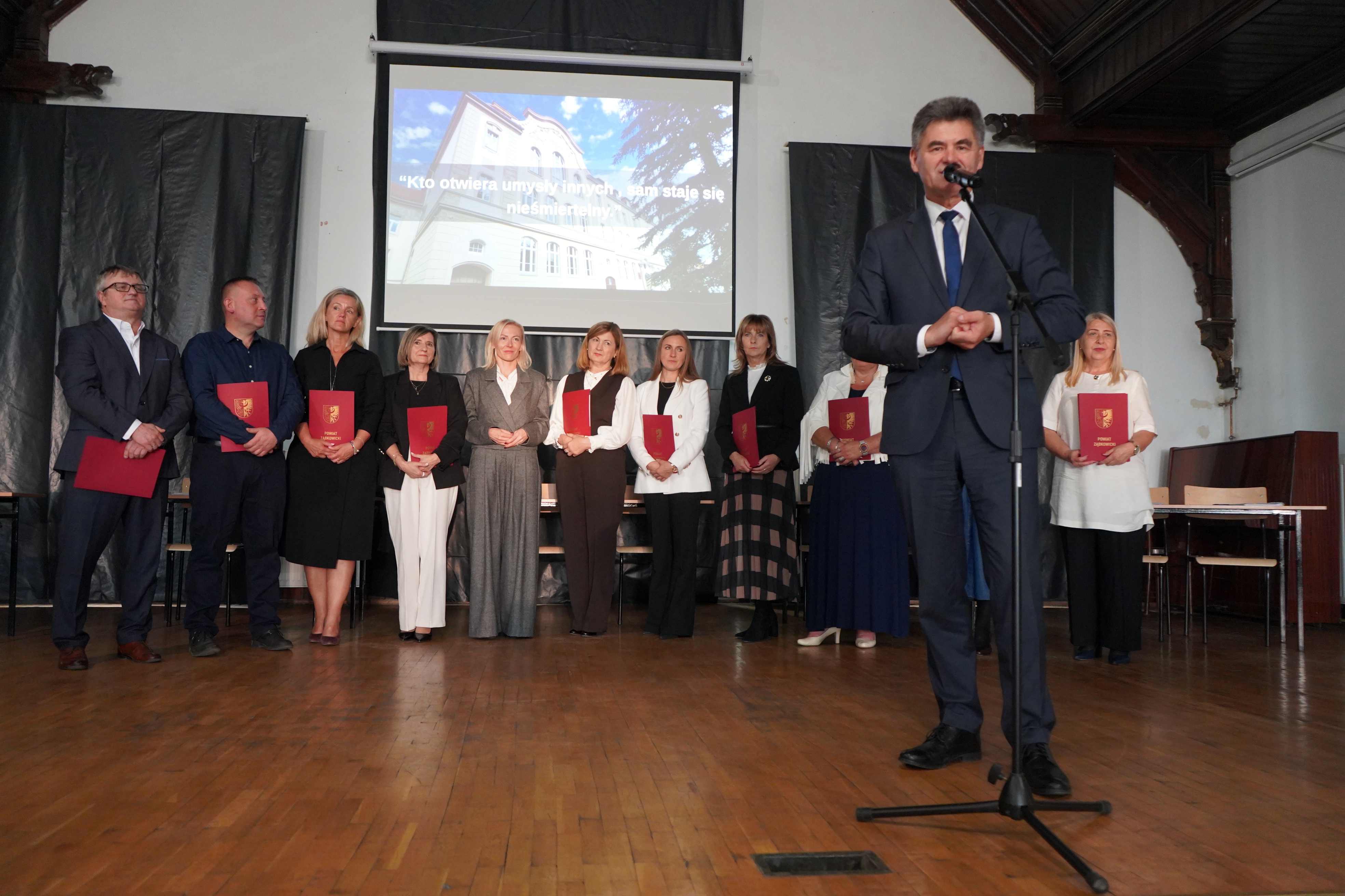 Złożył również podziękowania, w imieniu Zarządu Ząbkowickiego i własnym, wszystkim nauczycielom, dziękując za wyjątkowo wysokie wyniki matur i egzaminów zawodowych w ostatnich latach, które stawiają nasze szkoły w czołówce zdawalności na tle całego województwa dolnośląskiego. Jesteśmy dumni, że mamy tak wspaniałych edukatorów, a wyniki egzaminów mówią same za siebie.