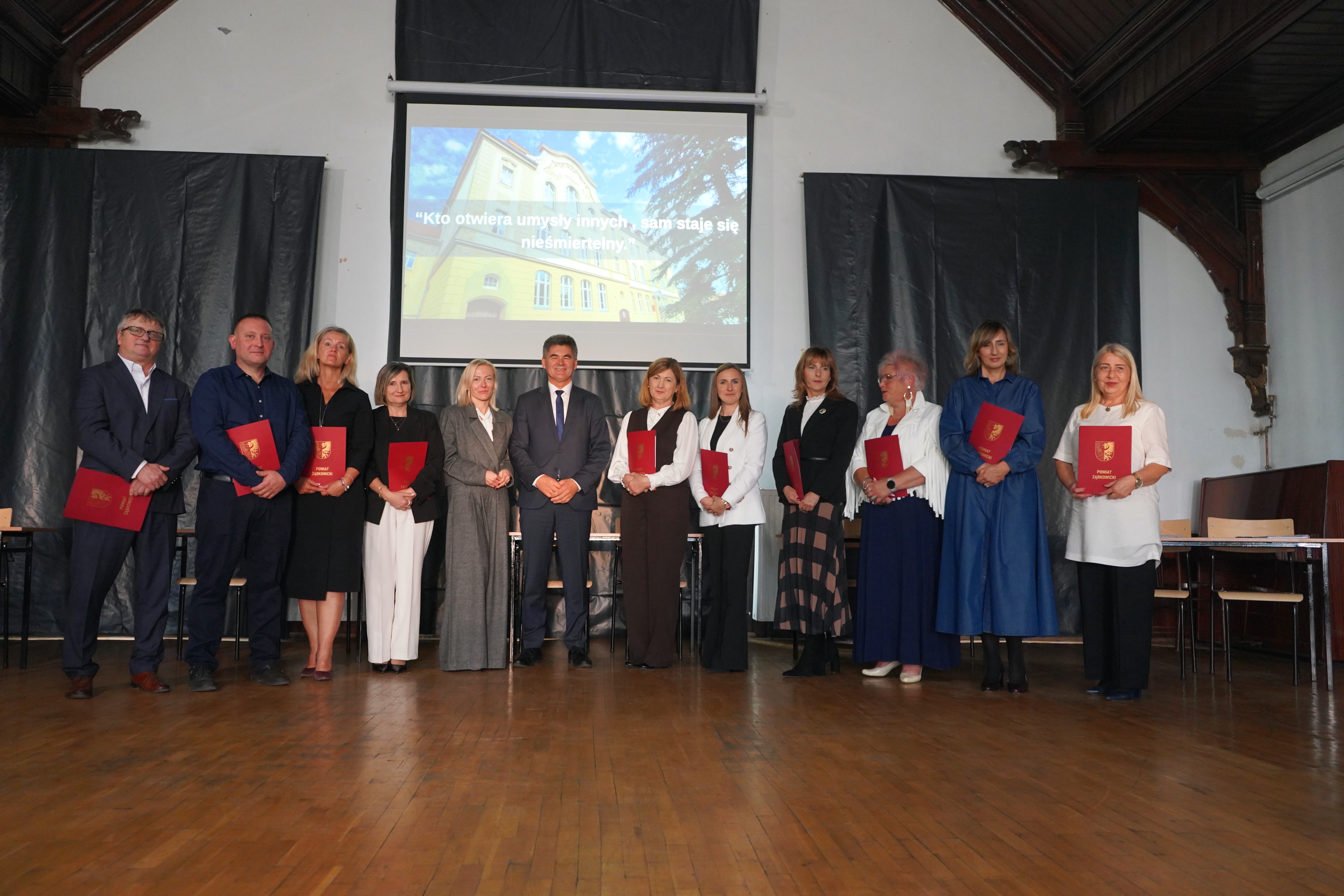 W piątek, 10 października, w Zespół Szkół Zawodowych w Ząbkowicach Śląskich odbyła się uroczystość z okazji Dnia Edukacji Narodowej. Podczas uroczystej gali przygotowanej przez uczniów, Starosta Ząbkowicki Roman Fester i Wicestarosta Justyna Giryn wręczyli podziękowania dla dyrektorów, dla których Powiat Ząbkowicki jest organem prowadzącym. Z tej okazji przyznano nagrody dla dyrektorów oraz nauczycieli, którzy w minionym roku szkolnym wykazali się szczególnym zaangażowaniem oraz pracą dla naszych dzieci i młodzieży.