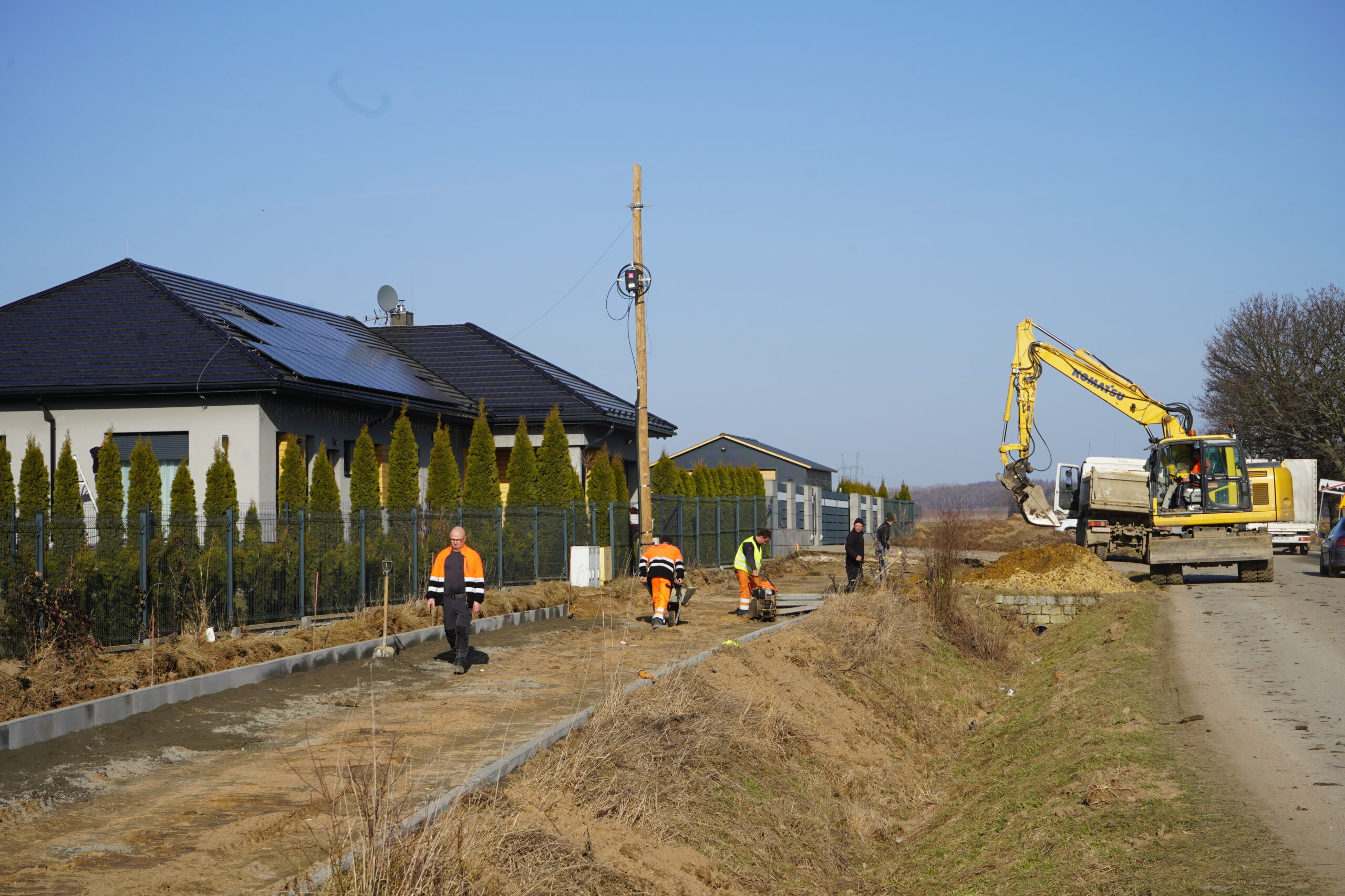3) Roboty drogowe – wykonanie konstrukcji ciągu pieszo–rowerowego, w tym podbudowy i nawierzchni, zgodnie z wymaganiami technicznymi dla infrastruktury rowerowej.