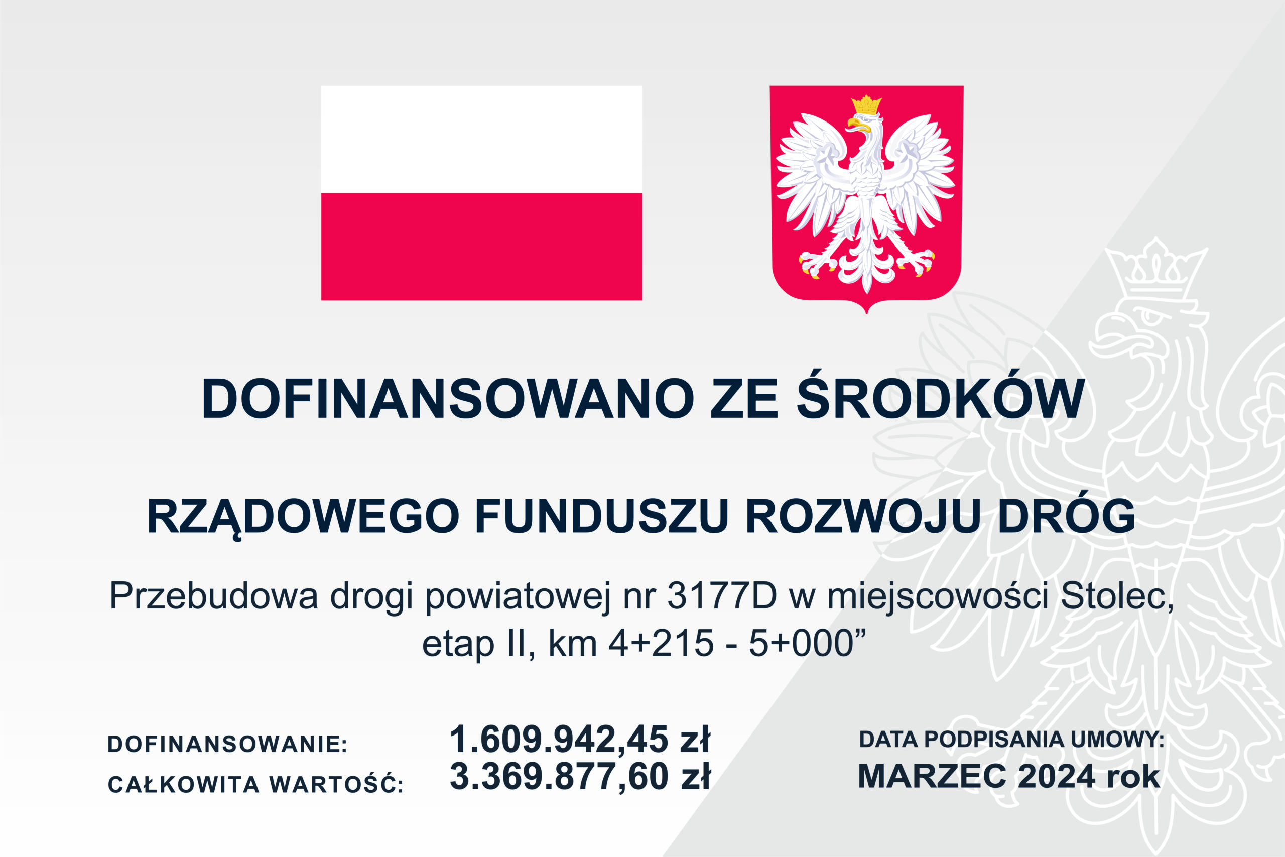 • Przebudowa drogi powiatowej nr 3177D w miejscowości Stolec, etap II