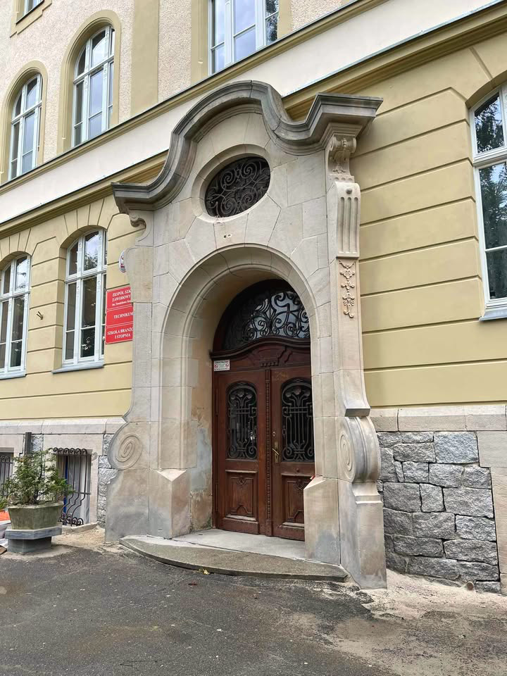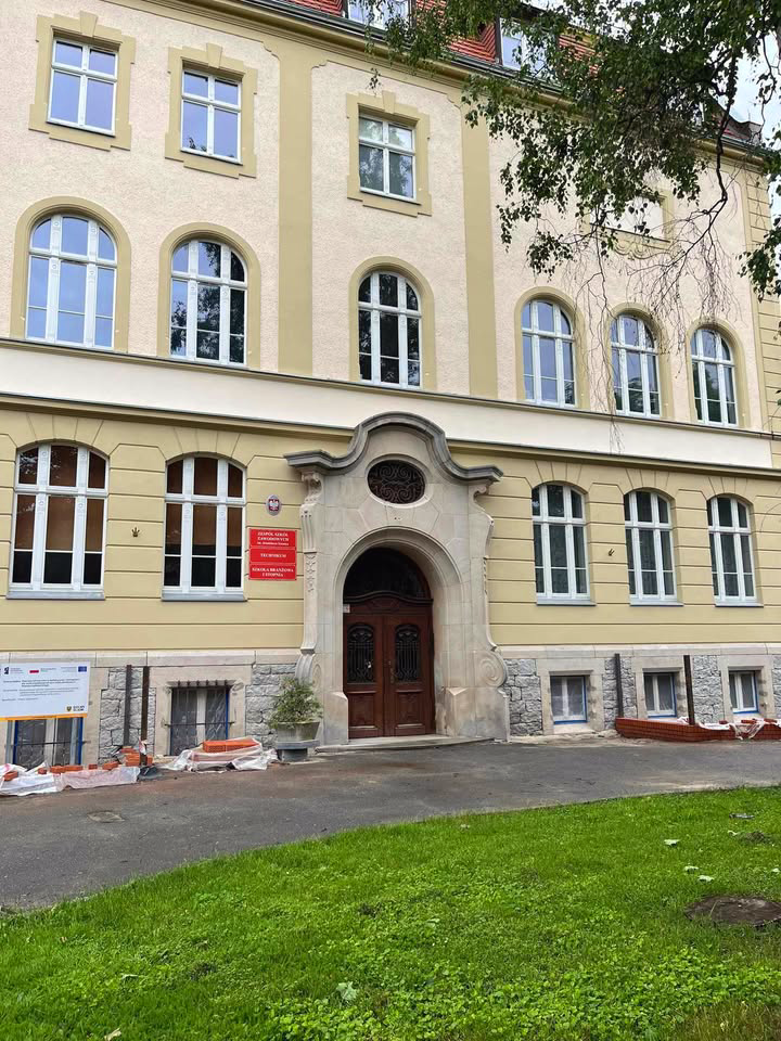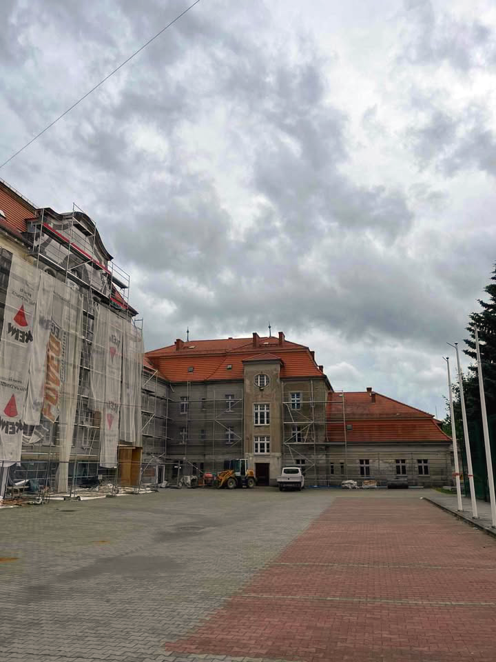 👨🔧🔨Kolejne postępy w remoncie elewacji budynku Zespołu Szkół Zawodowych w Ząbkowicach Śląskich.