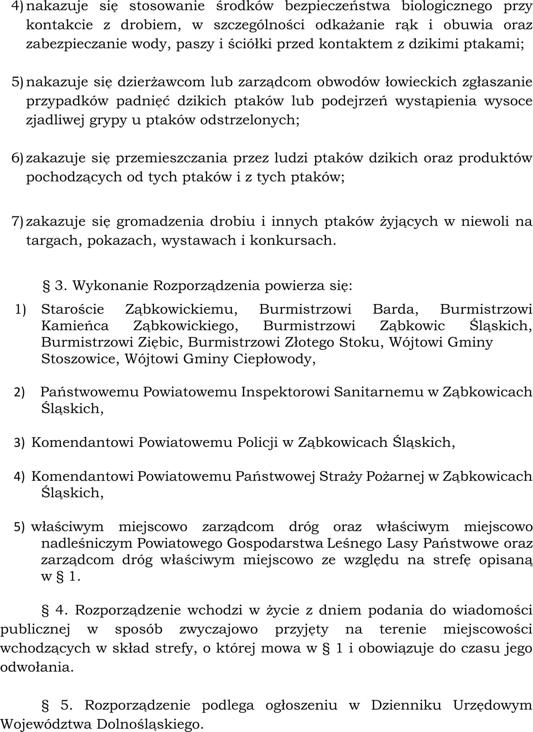 • ROZPORZĄDZENIE NR 1/2025 POWIATOWEGO LEKARZA WETERYNARII W ZĄBKOWICACH ŚLĄSKICH Z DNIA 26 listopada 2025 r. w sprawie przeciwdziałania rozprzestrzenianiu się wysoce zjadliwej grypy ptaków (HPAI) na terenie powiatu ząbkowickiego