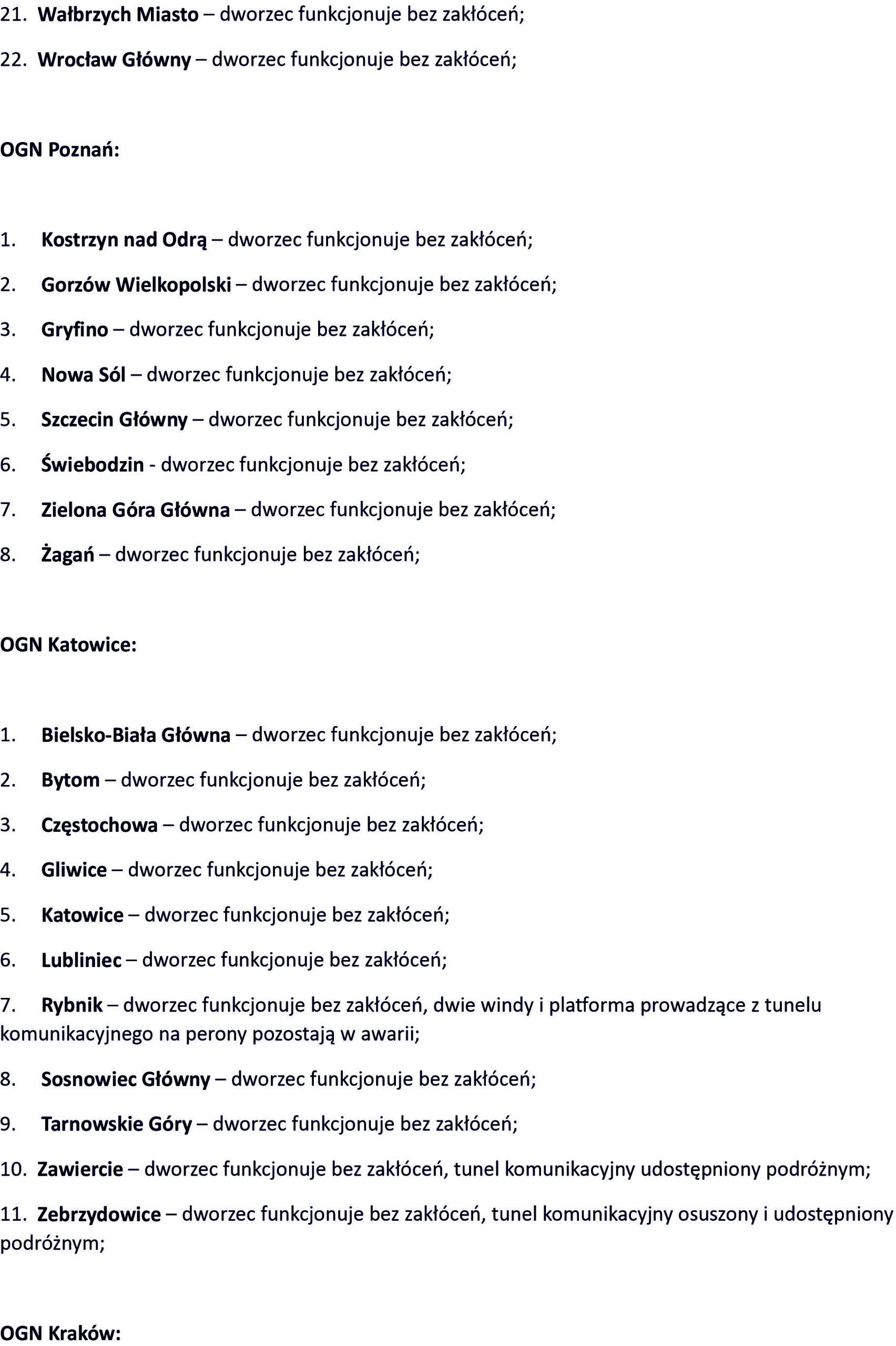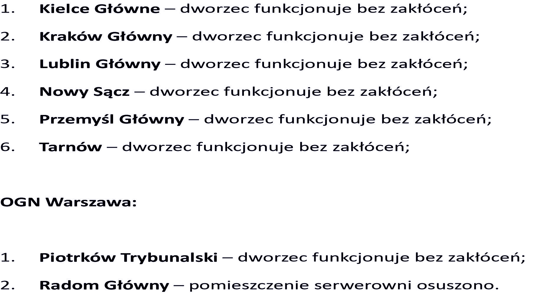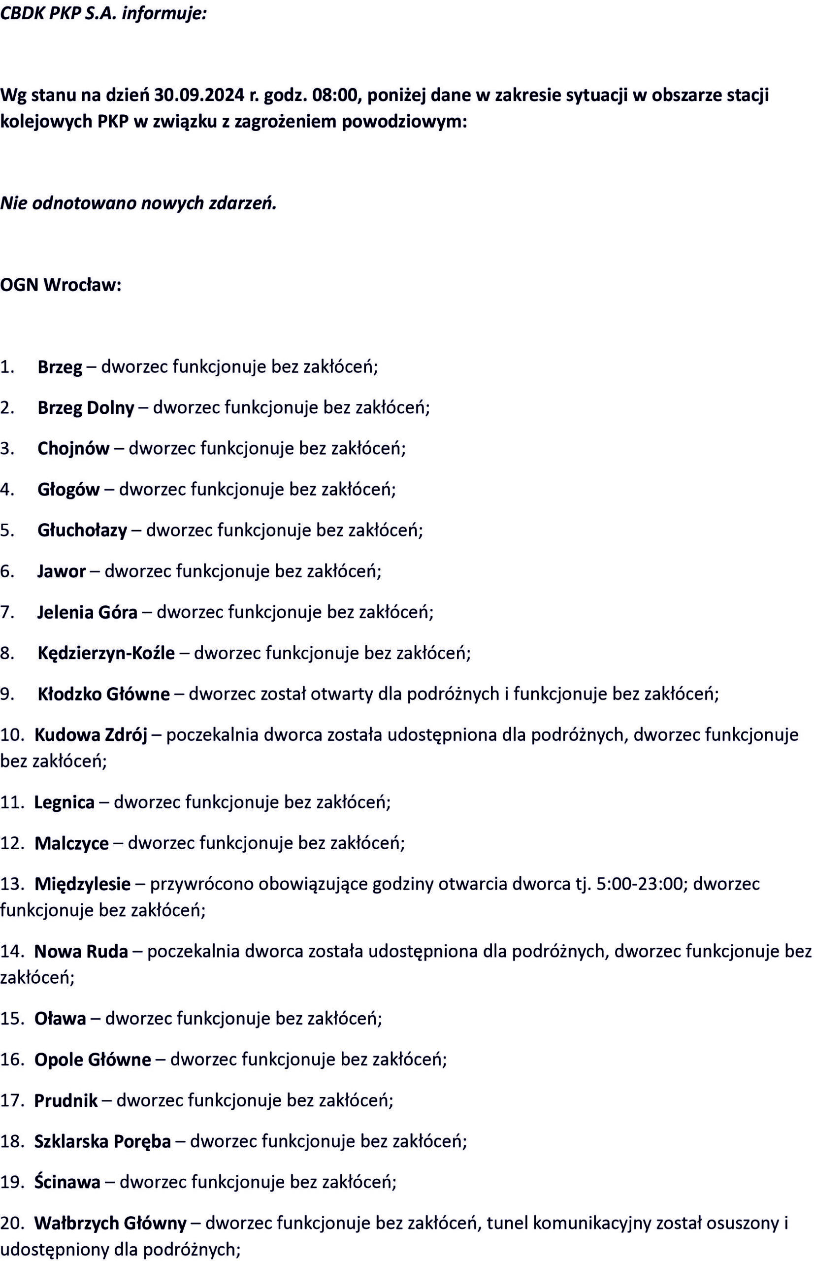 Sytuacja powodziowa na dworcach PKP stan na dzień 30.09.2024 r. godz. 08:00